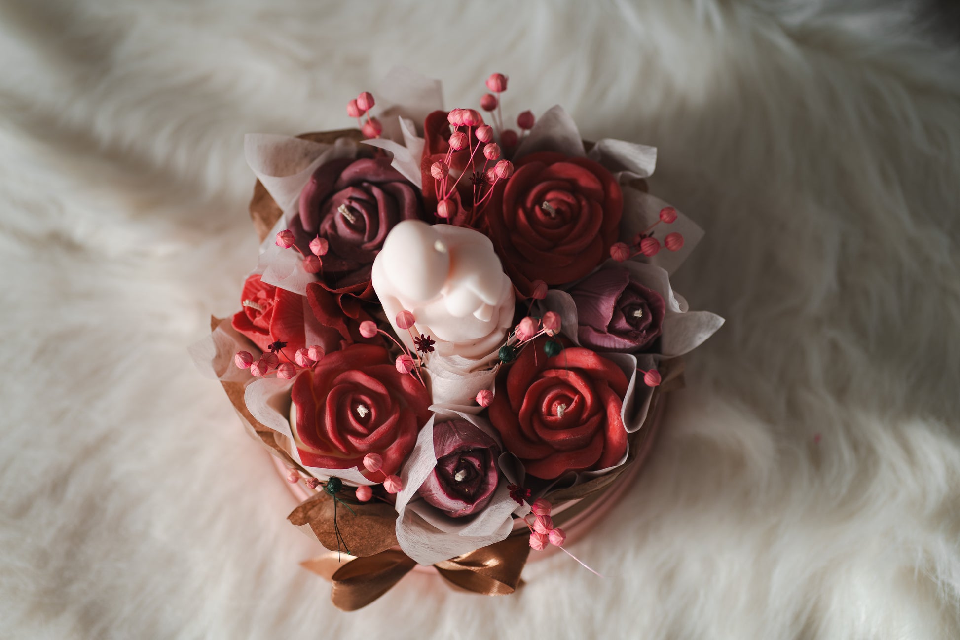 Buchet de flori în cutie cu lumânări parfumate handmade
