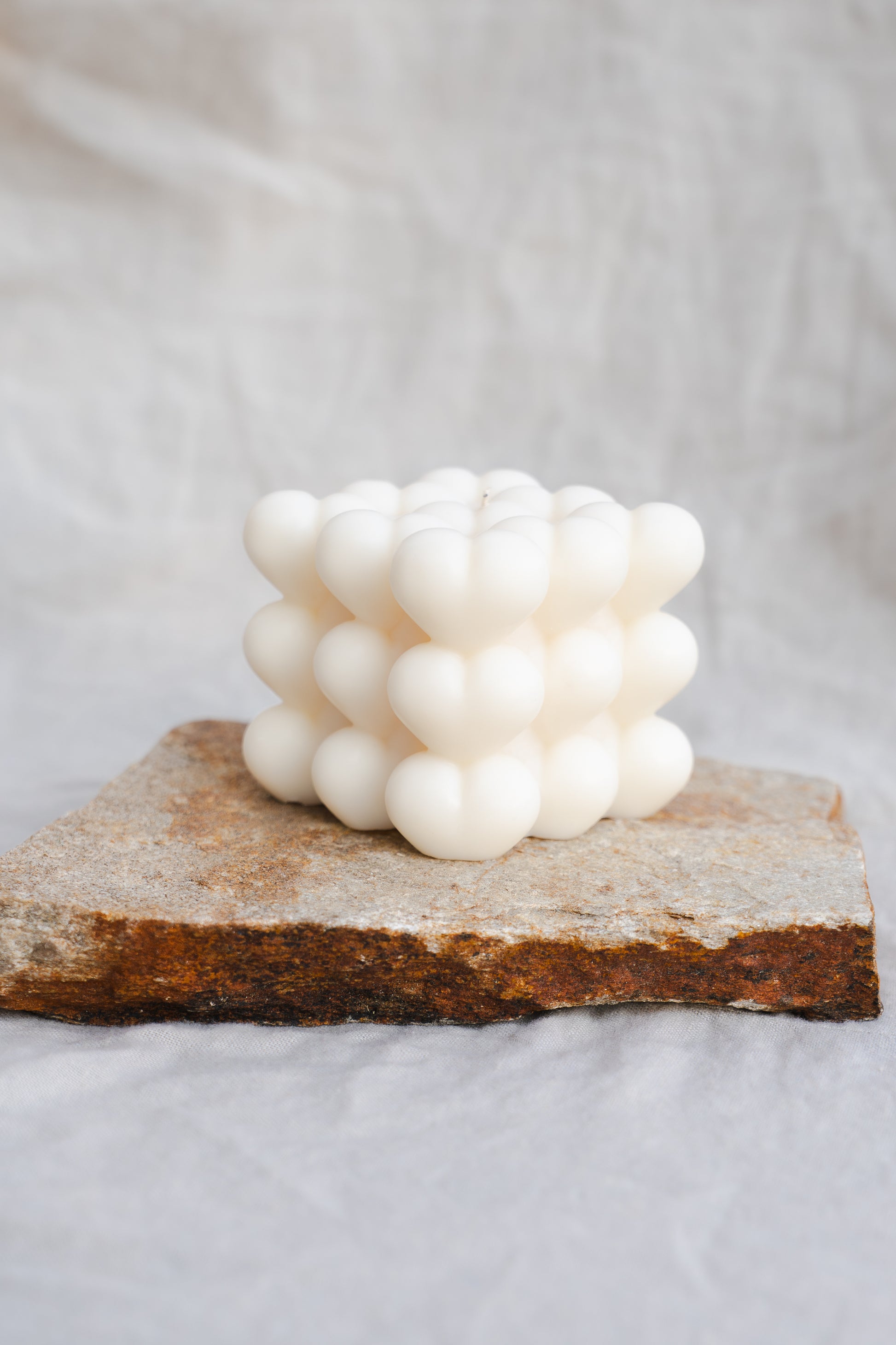 Această lumânare artizanală combină forma minimalistă cu un model sculptural de inimi în relief, devenind un decor deosebit pentru dormitor, baie sau masă festivă. Parfumul floral, pudrat sau vanilat (în funcție de selecție) completează atmosfera intimă și relaxantă.