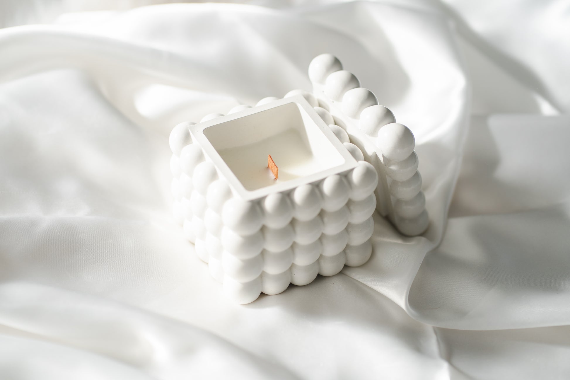 Răsfață-ți simțurile și transformă spațiul tău într-un sanctuar de relaxare cu această lumânare parfumată handmade, realizată din ceară naturală de soia, turnată manual într-un recipient ceramic elegant cu design minimalist și bule decorative în relief. Capacul inclus păstrează aroma intactă și oferă un plus de stil modern.