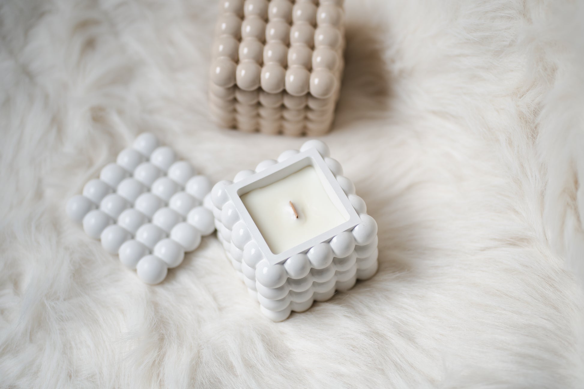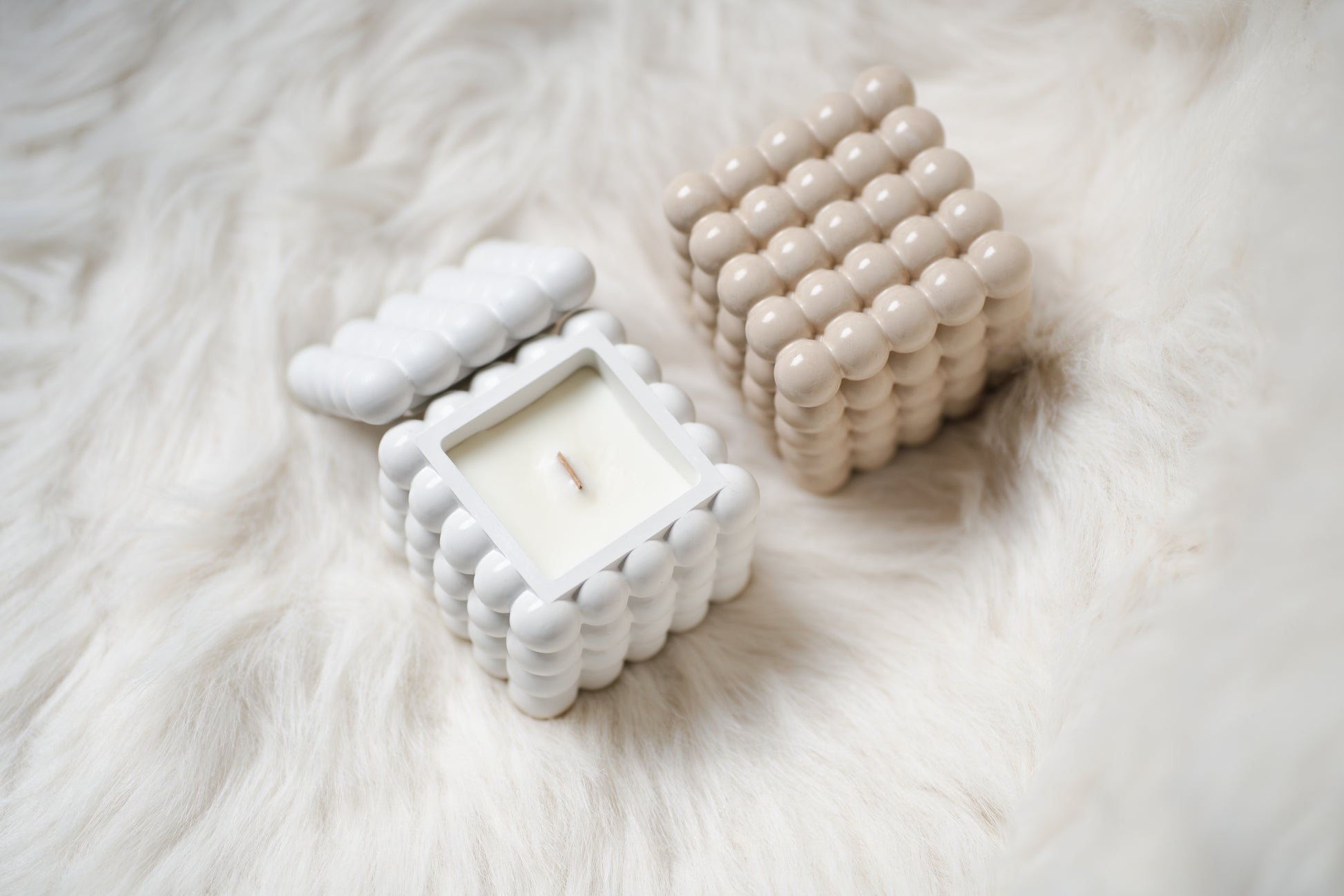 🕯️ Lumânare parfumată din ceară de soia – Recipient ceramic cu bule și capac