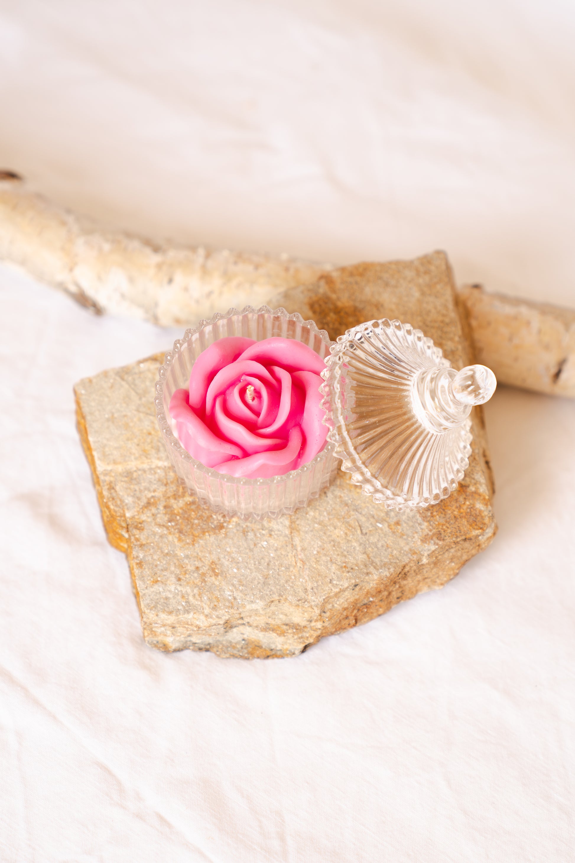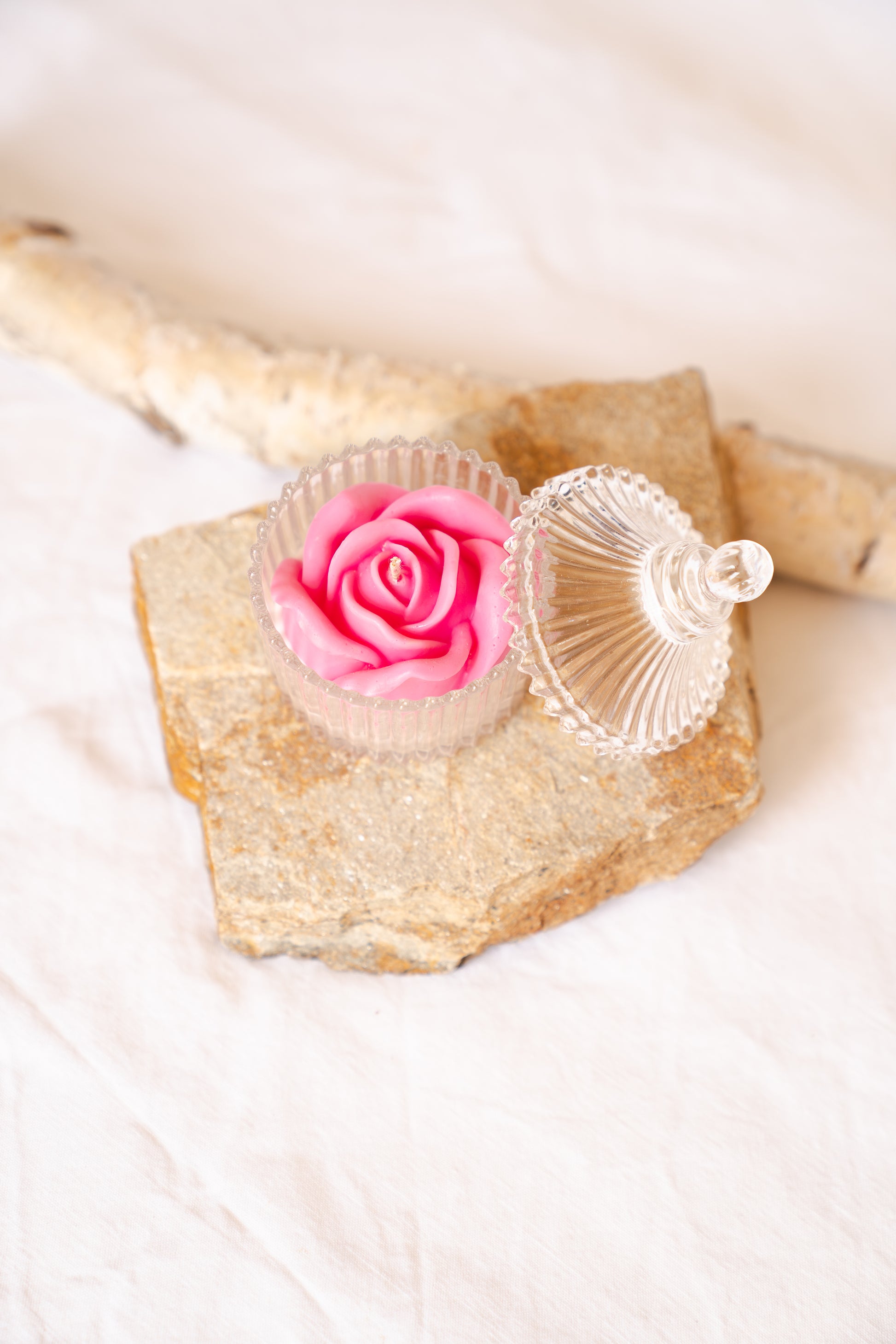 Forma rafinată a trandafirului turnat manual din ceară roz, însoțită de bomboniera elegantă cu detalii fine, transformă această lumânare într-un obiect decorativ cu adevărat special. Este potrivită atât pentru decoruri moderne, cât și pentru interioare clasice, feminine sau vintage.