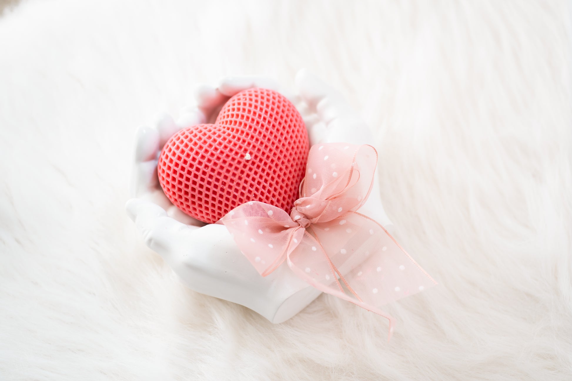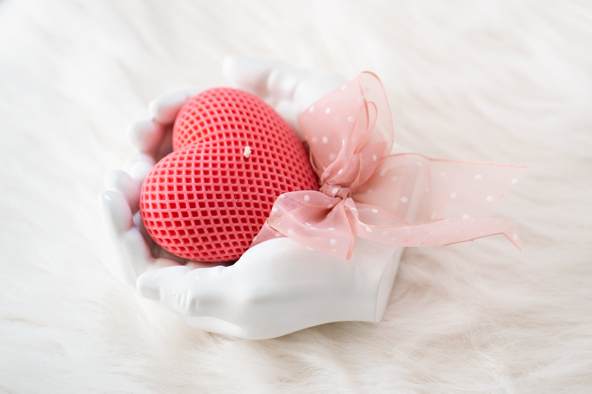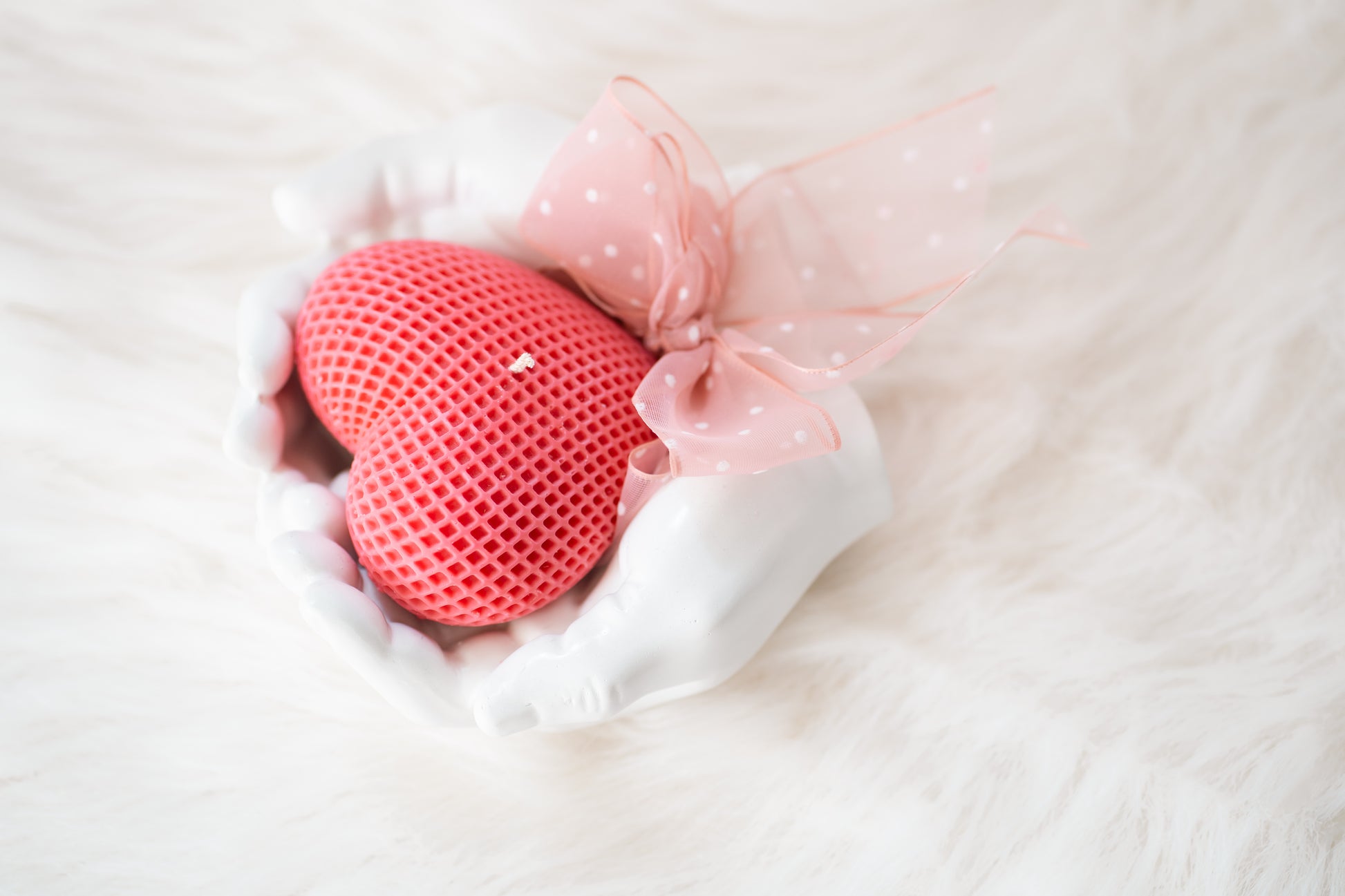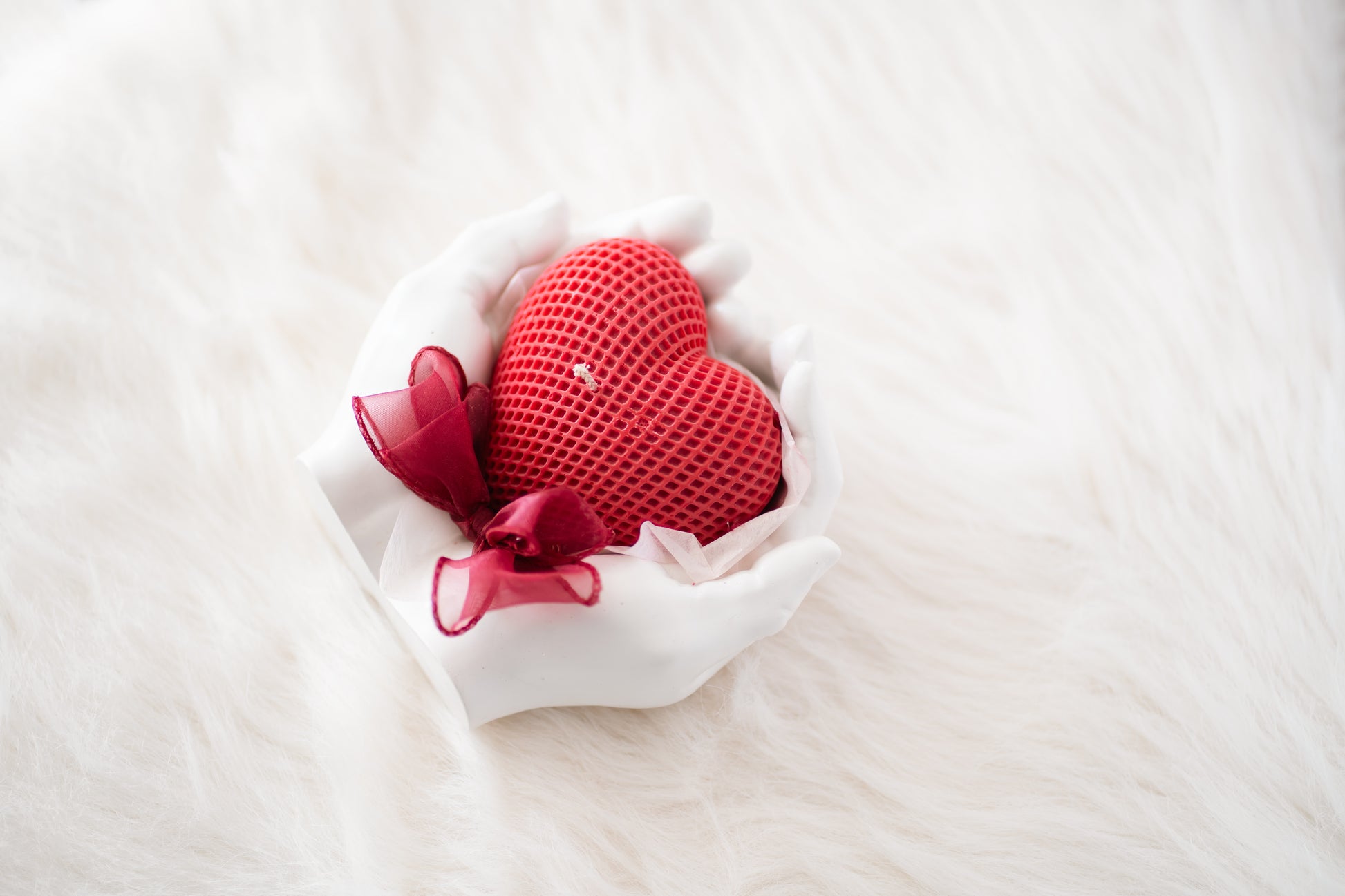 Set cadou handmade – suport ceramic în formă de mâini și lumânare parfumată în formă de inimă