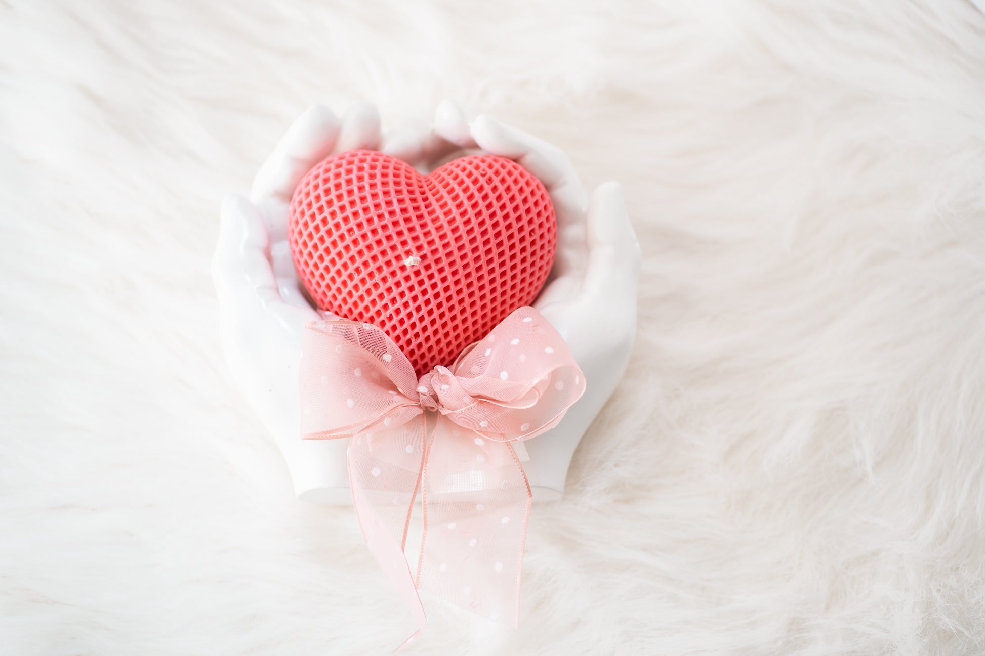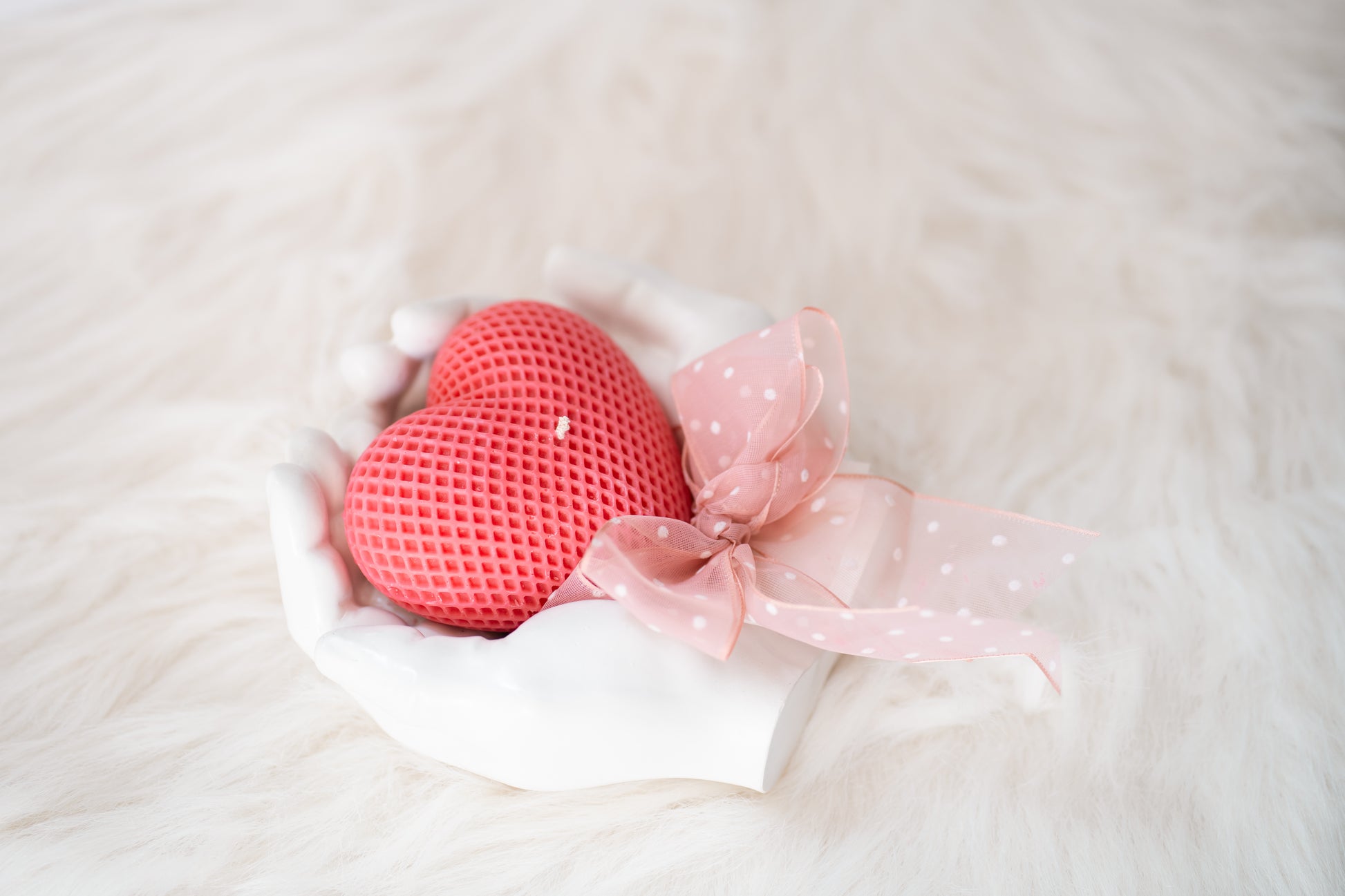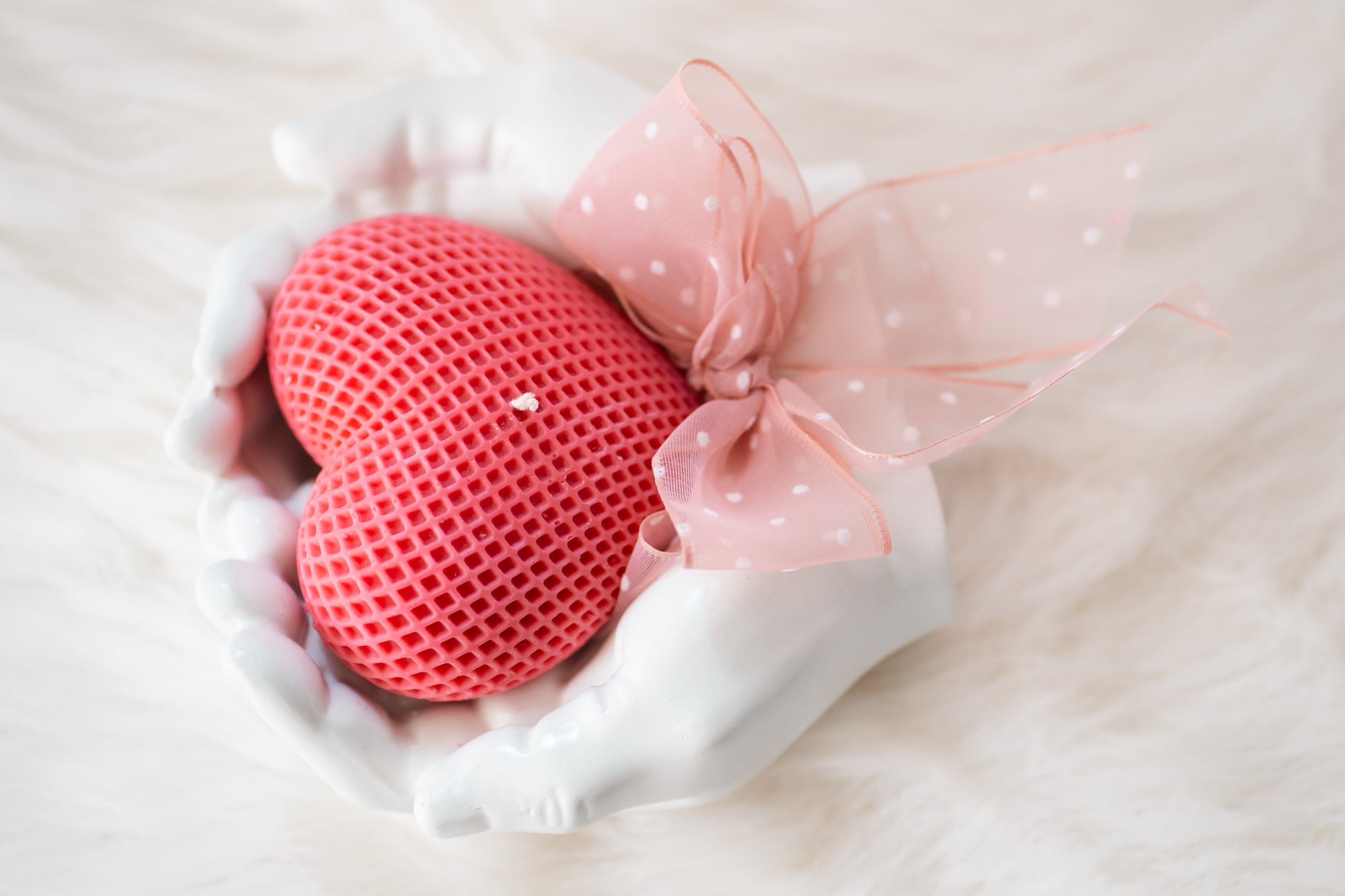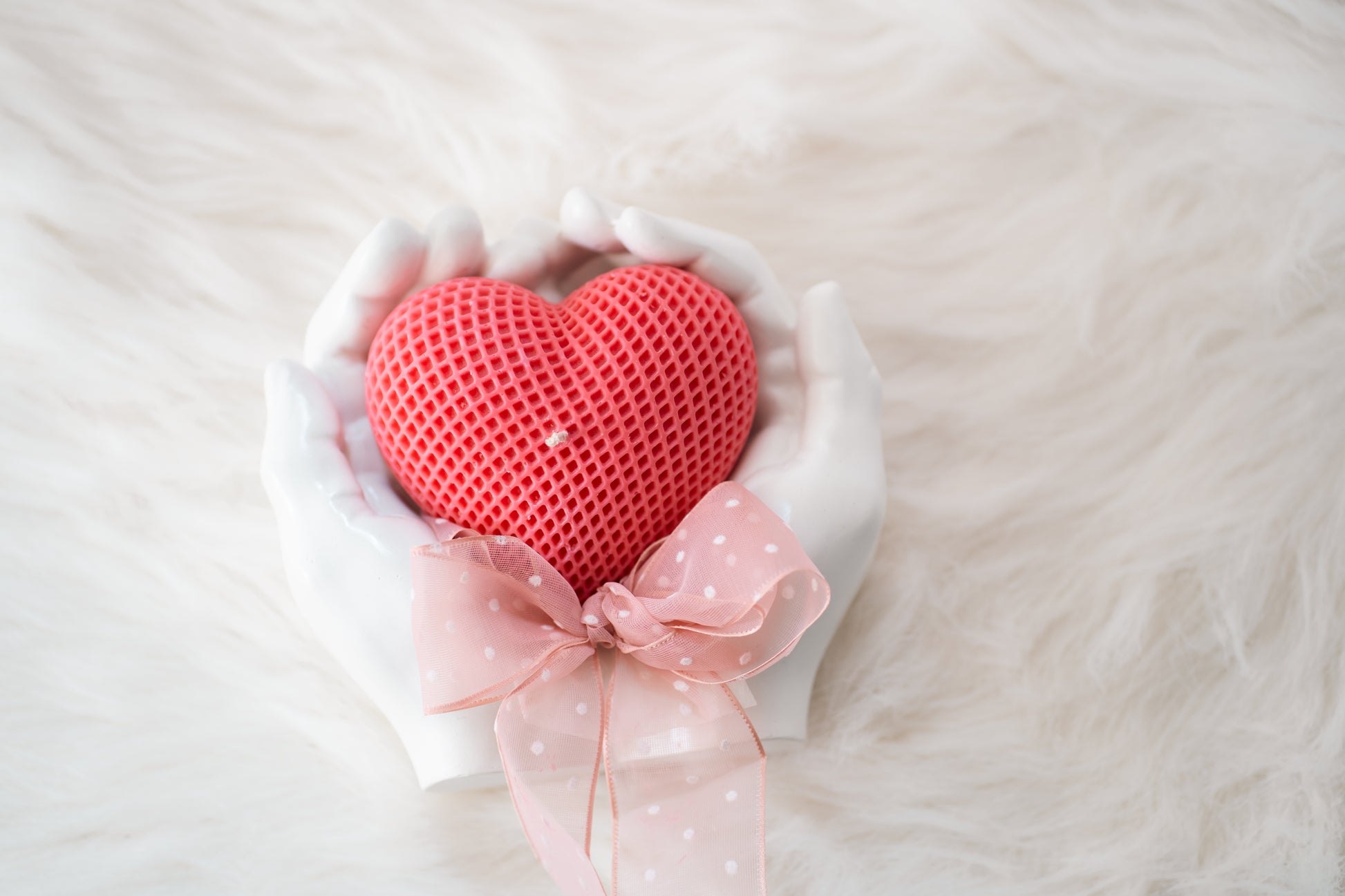 Set cadou handmade – suport ceramic în formă de mâini și lumânare parfumată în formă de inimă
