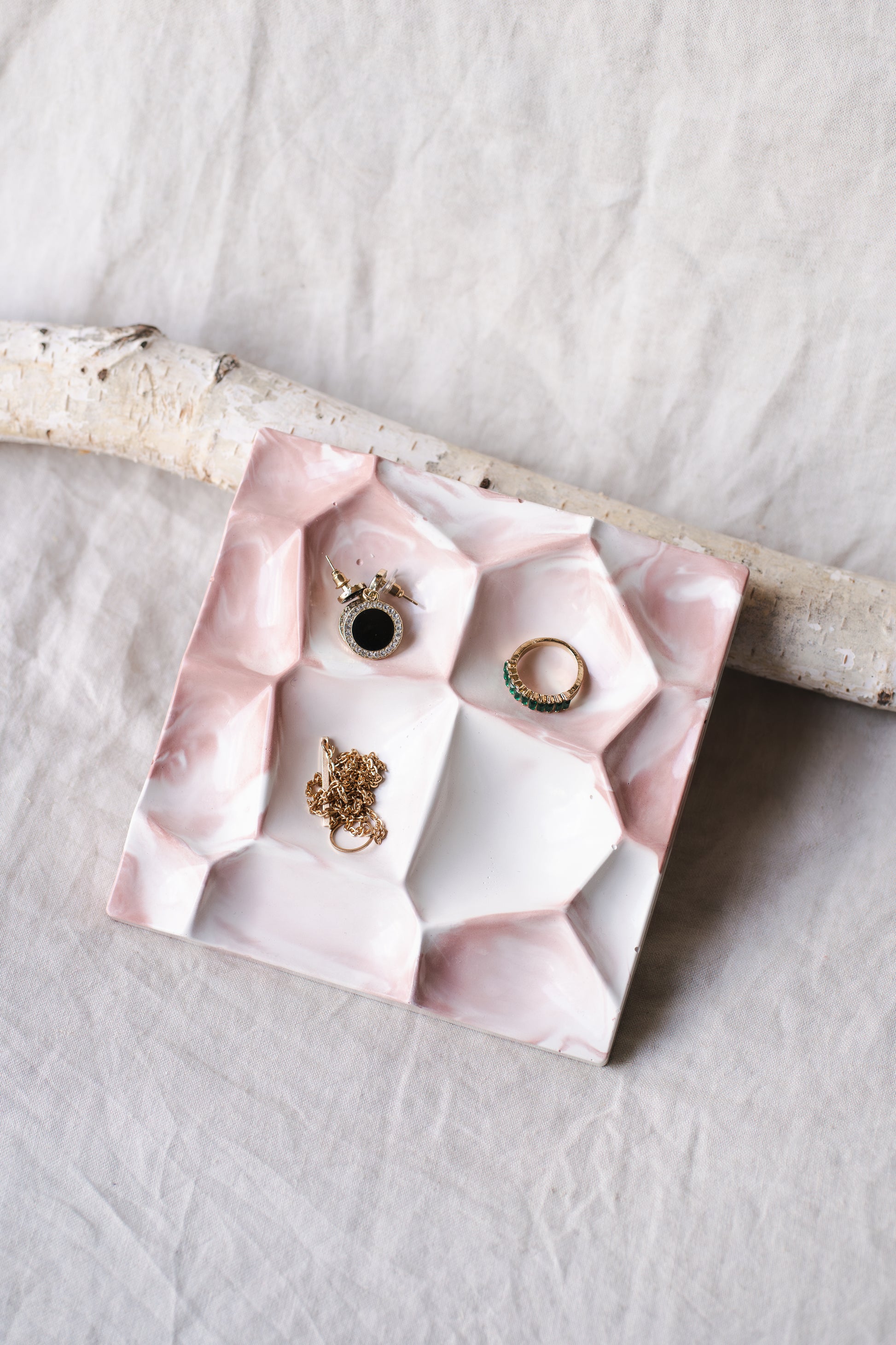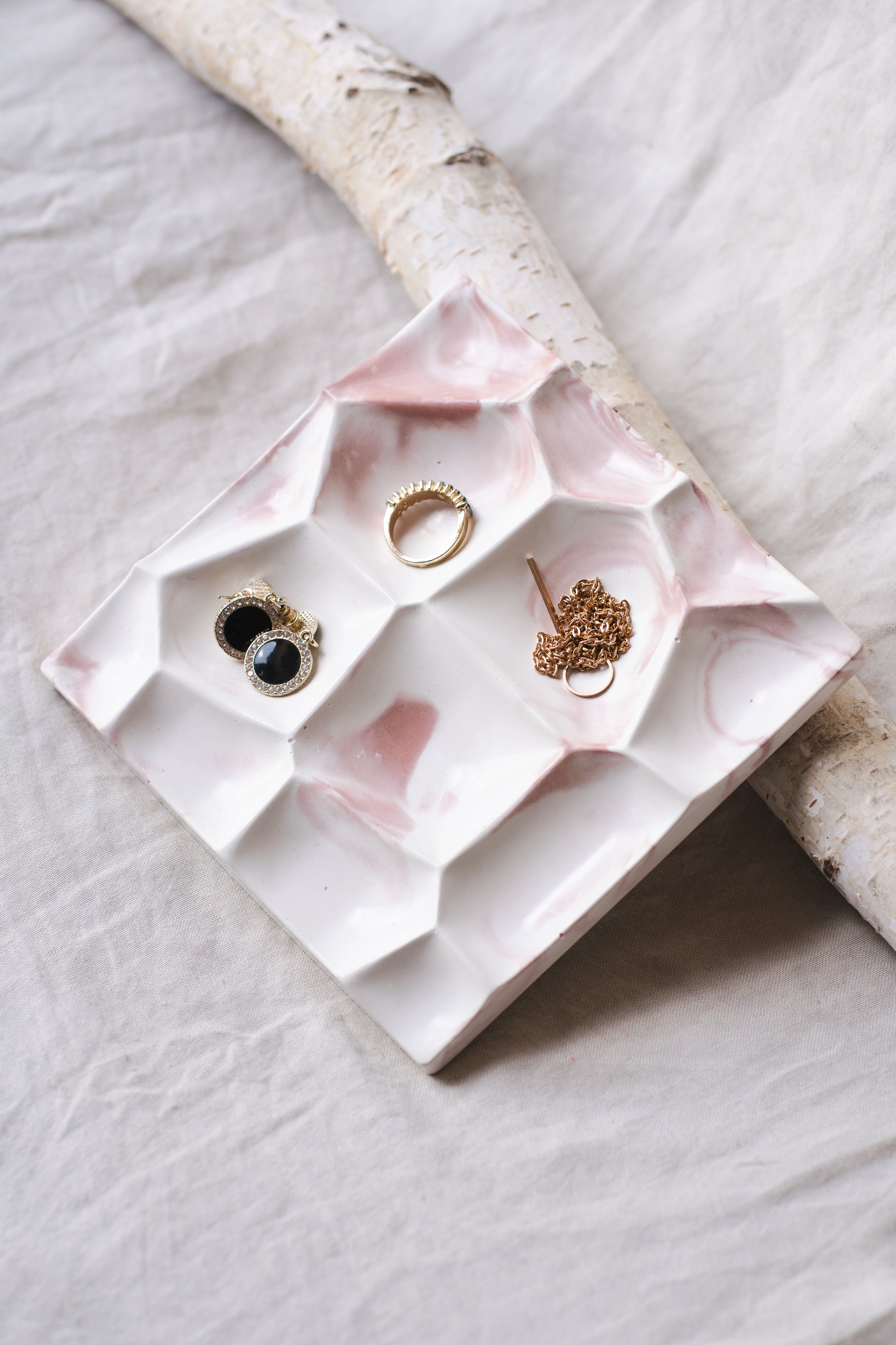 Suport bijuterii din praf ceramic – alb si roz pastel, design minimalist și elegant