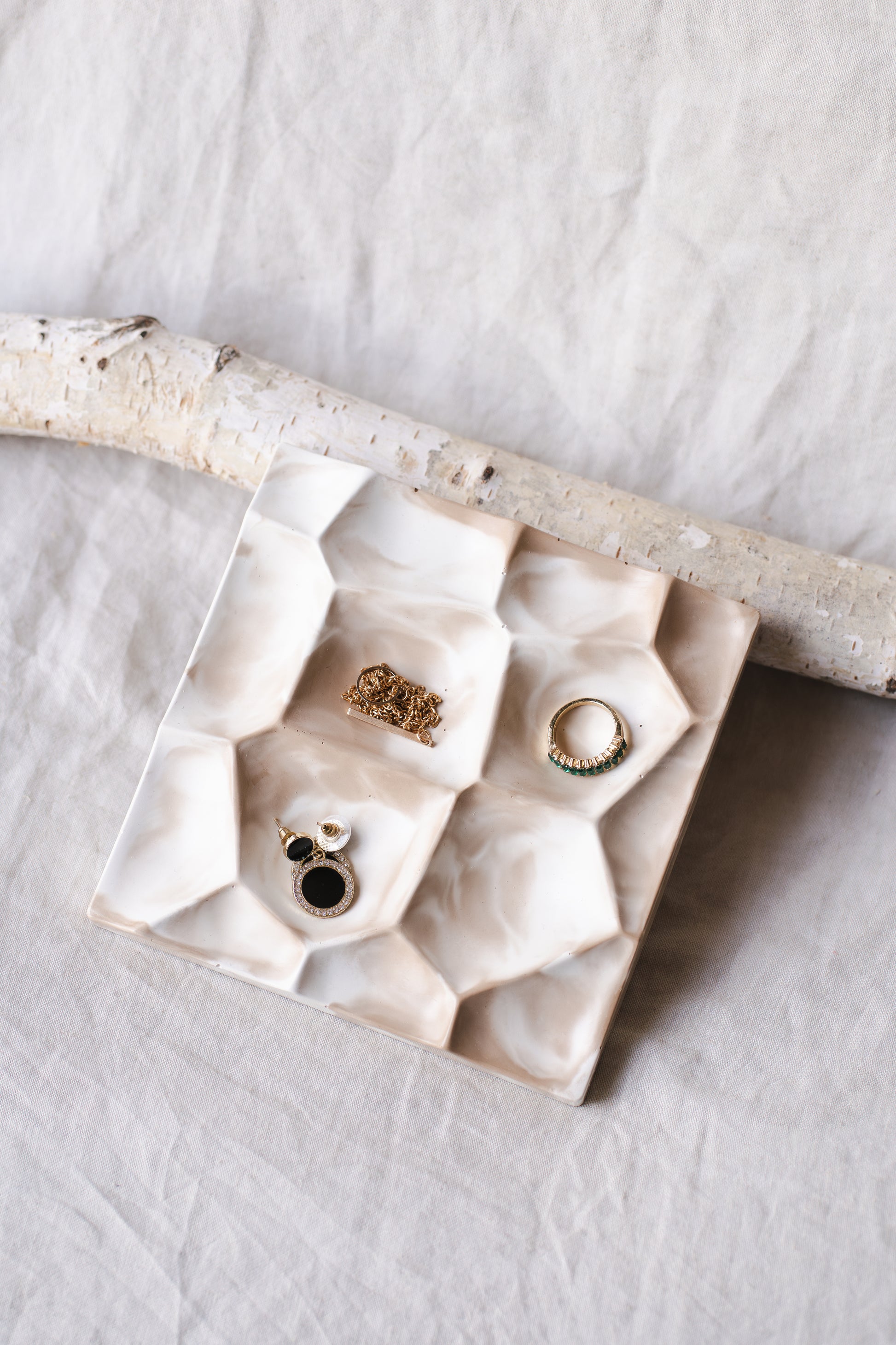 Organizează-ți bijuteriile cu stil și rafinament cu acest suport handmade din praf ceramic, în nuanță albă si roz pastel, cu un design minimalist și elegant. Perfect pentru inele, cercei, brățări sau pandantive, acest organizator este ideal atât pentru utilizare zilnică, cât și ca obiect de decor modern pentru orice spațiu.
