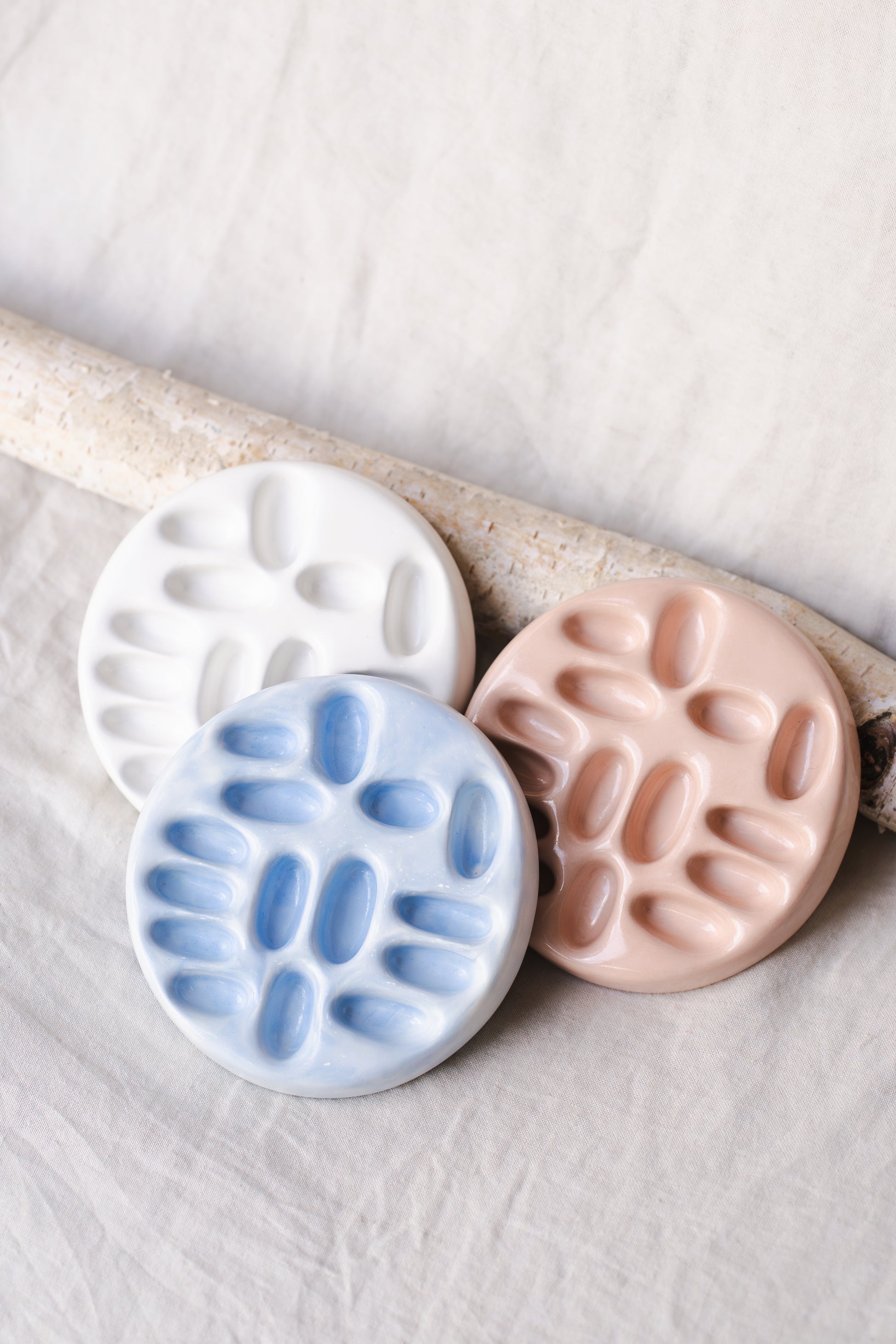 Păstrează-ți bijuteriile în siguranță și cu stil cu acest suport organizator handmade din praf ceramic, în nuanță albastra, cu un design minimalist și elegant. Turnat manual, cu atenție la detalii, este ideal pentru depozitarea inelor, cerceilor, colierelor sau a altor accesorii mici.